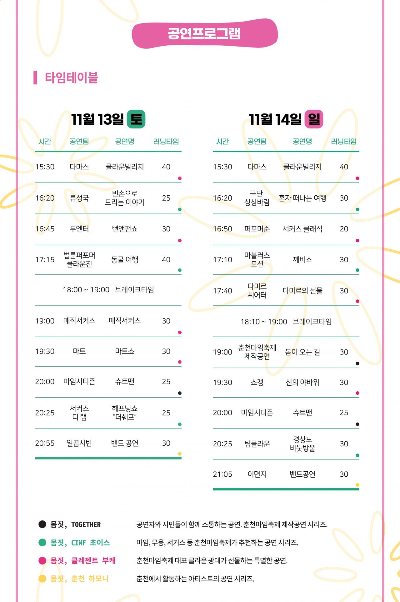 춘천마임축제에서 기획, 진행하는 상설 프로그램