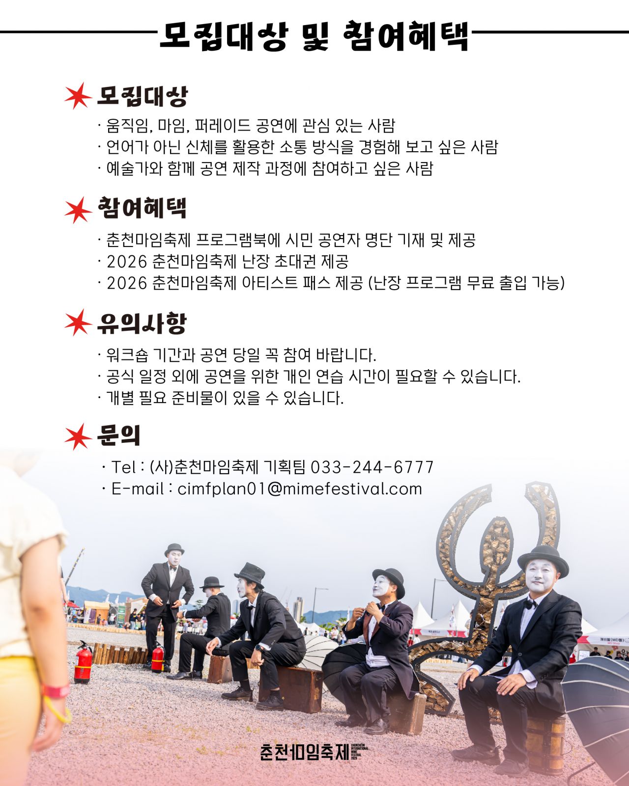 [2026 마임 아카데미] 몸짓 워크숍 '마임 온 더 스트릿' 참여자 모집 (~5.6)